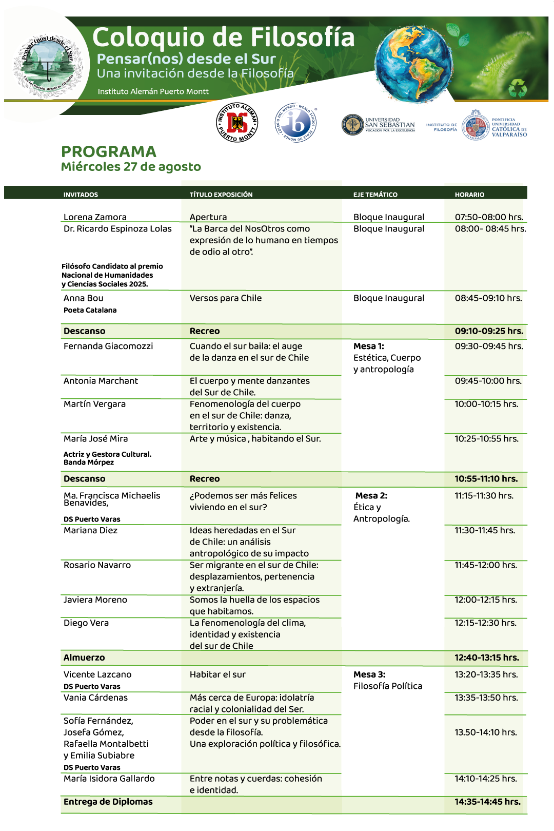 El encuentro reunirá a especialistas y estudiantes en mesas temáticas sobre teoría del conocimiento, antropología, sociología, filosofía política y otras disciplinas. Los trabajos presentados por los jóvenes fueron revisados y seleccionados por académicos de las universidades participantes, lo que otorga un importante respaldo académico al coloquio. Además, el evento contará con la participación de una delegación de alumnos del Colegio Alemán de Puerto Varas.