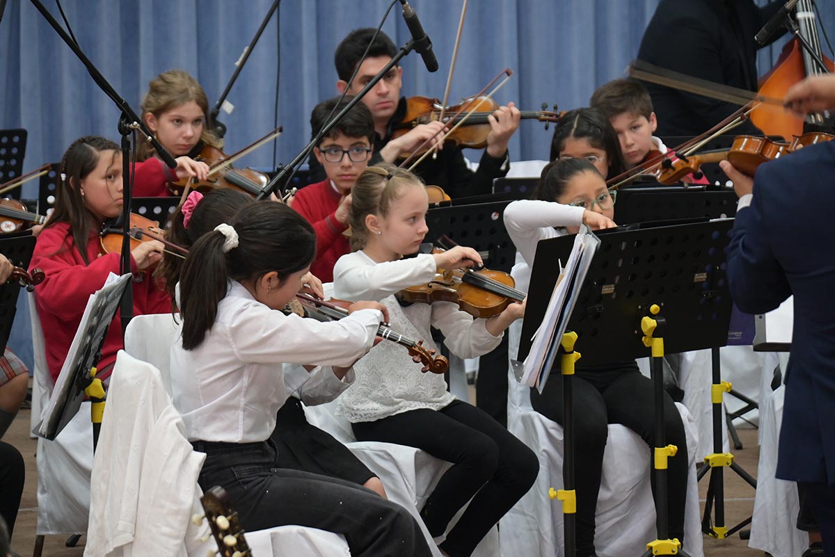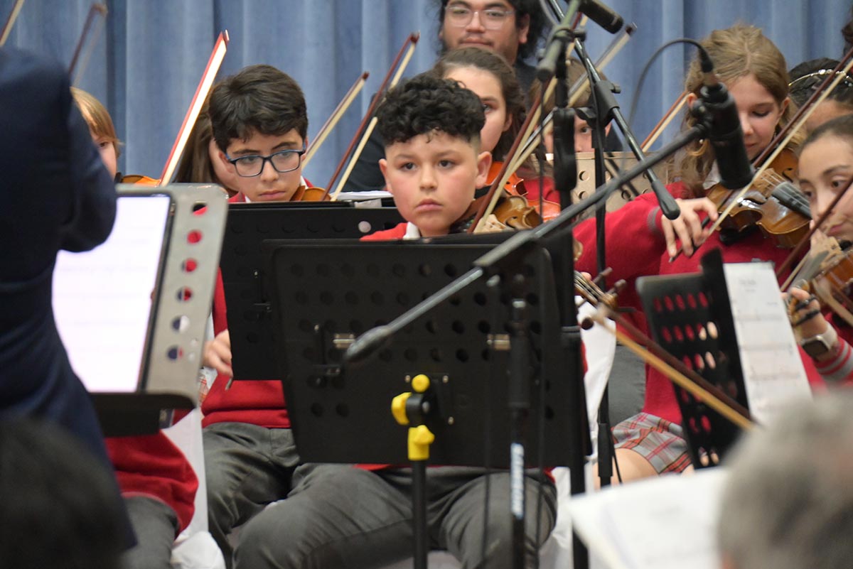 La Orquesta Infantil-Juvenil del Instituto Alemán de Puerto Montt celebró su décimo aniversario con un gran concierto de gala, realizado en el gimnasio 2 del colegio ante más de 300 asistentes. Bajo la dirección del profesor Alexis Velásquez, los jóvenes músicos deslumbraron al público con una presentación inolvidable, fruto de su intensa preparación en la Actividad de Formación Complementaria.
