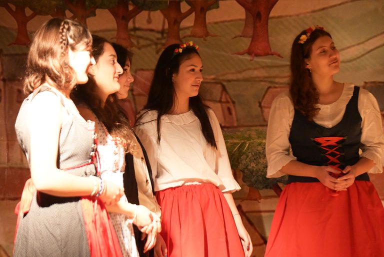 La obra fue en alemán, por lo que los alumnos demostraron sus aprendizajes y avances en el idioma, lo que fue destacado por el público, los que quedaron gratamente sorprendidos con el desplante y vocabulario de los estudiantes.