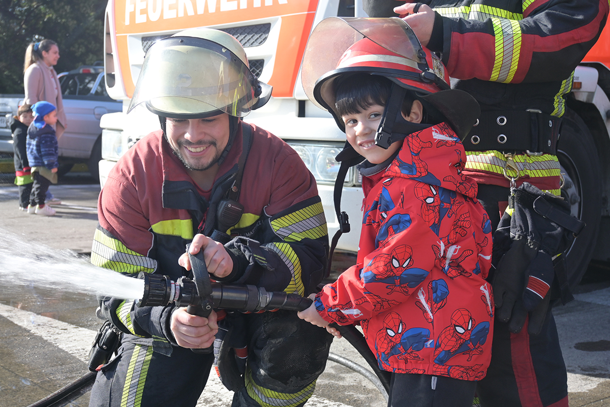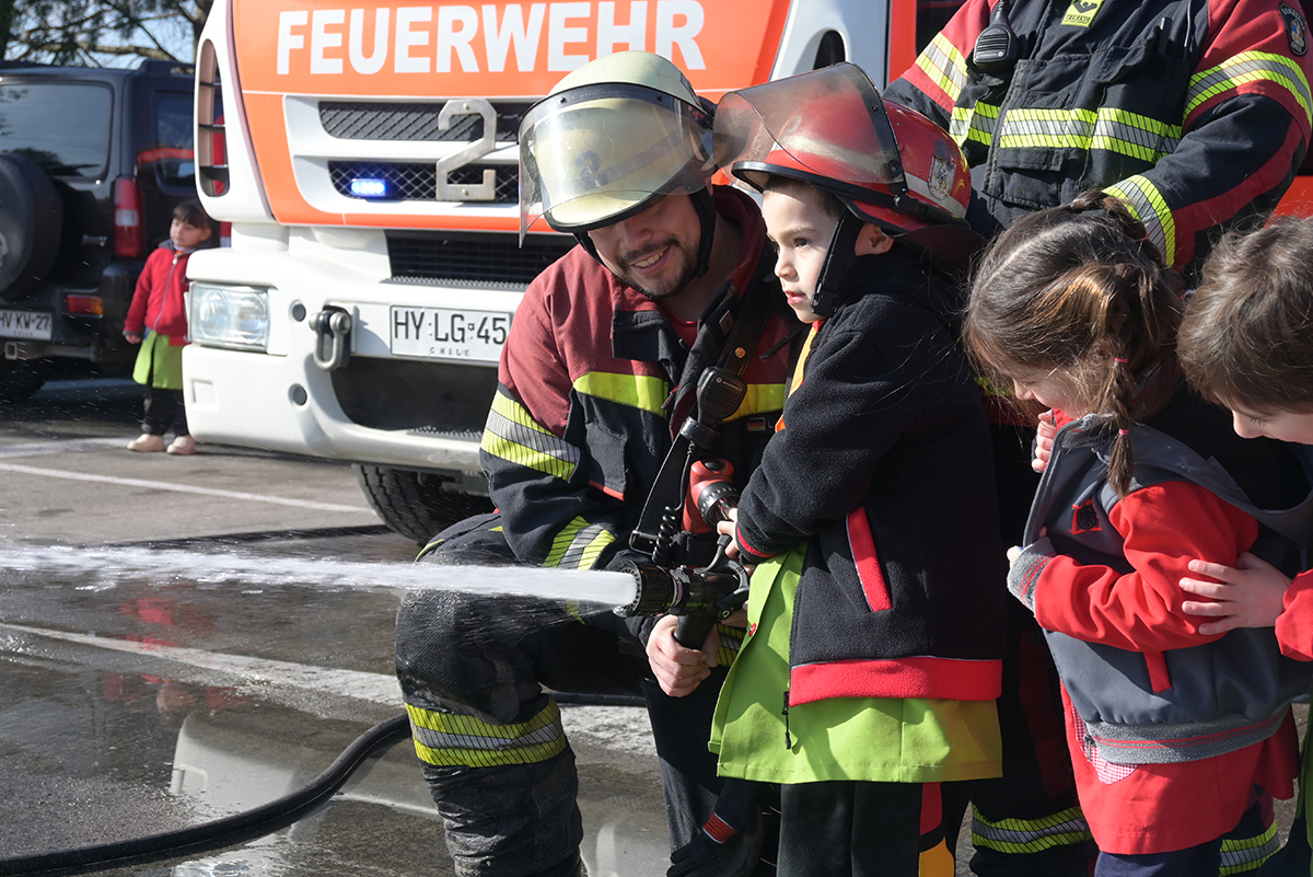 El Kindergarten del Instituto Alemán de Puerto Montt recibió a la 2ª Compañía de Bomberos "Germania", como parte del tema transdisciplinario: "Cómo nos organizamos". Los voluntarios compartieron con los estudiantes una demostración de su trabajo, equipamiento y materiales.