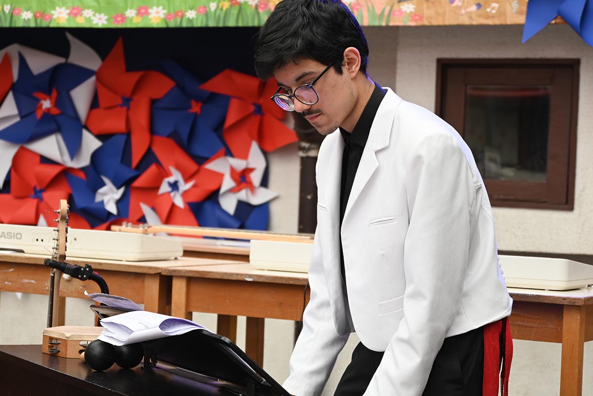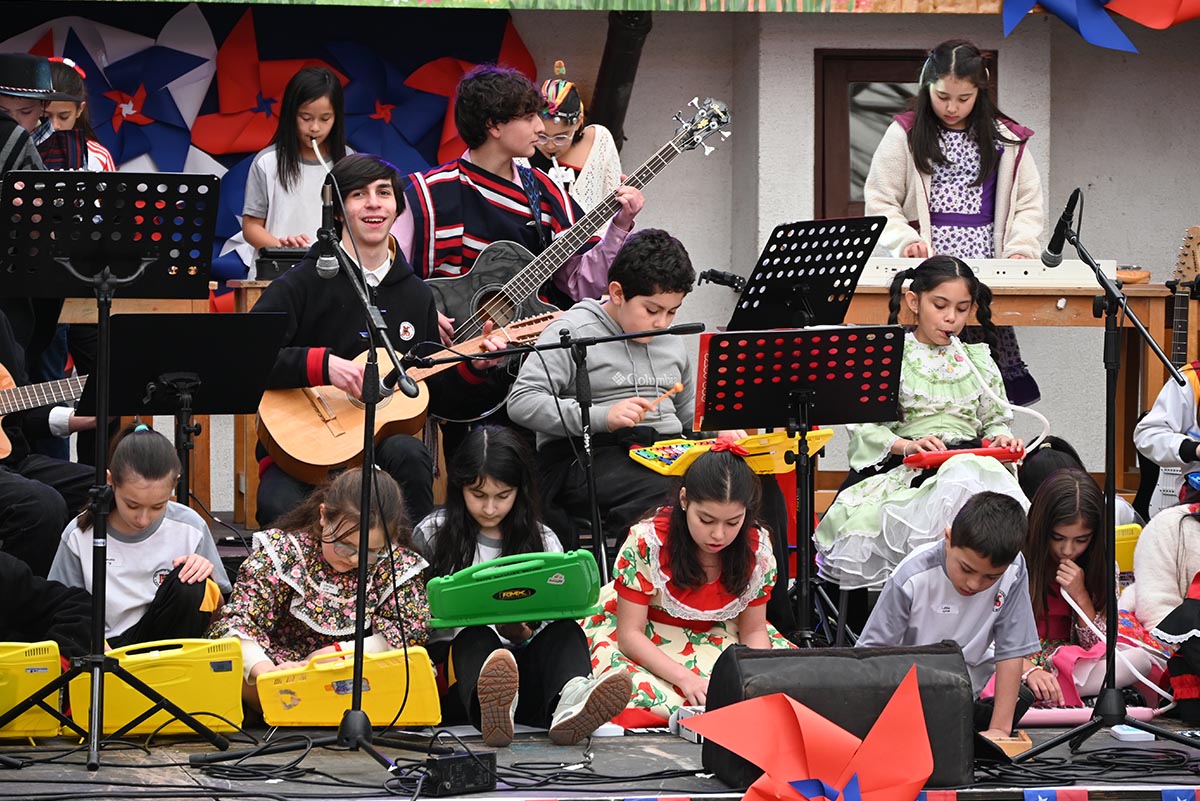 Los festejos se vivieron en los gimnasios, la cancha y el patio techado, con presentaciones musicales en vivo, la energía de una chinchinera invitada y juegos típicos que entusiasmaron a niños y jóvenes. Cada espacio se transformó en una oportunidad para disfrutar y valorar nuestras costumbres, fortaleciendo el orgullo por nuestra identidad cultural.
