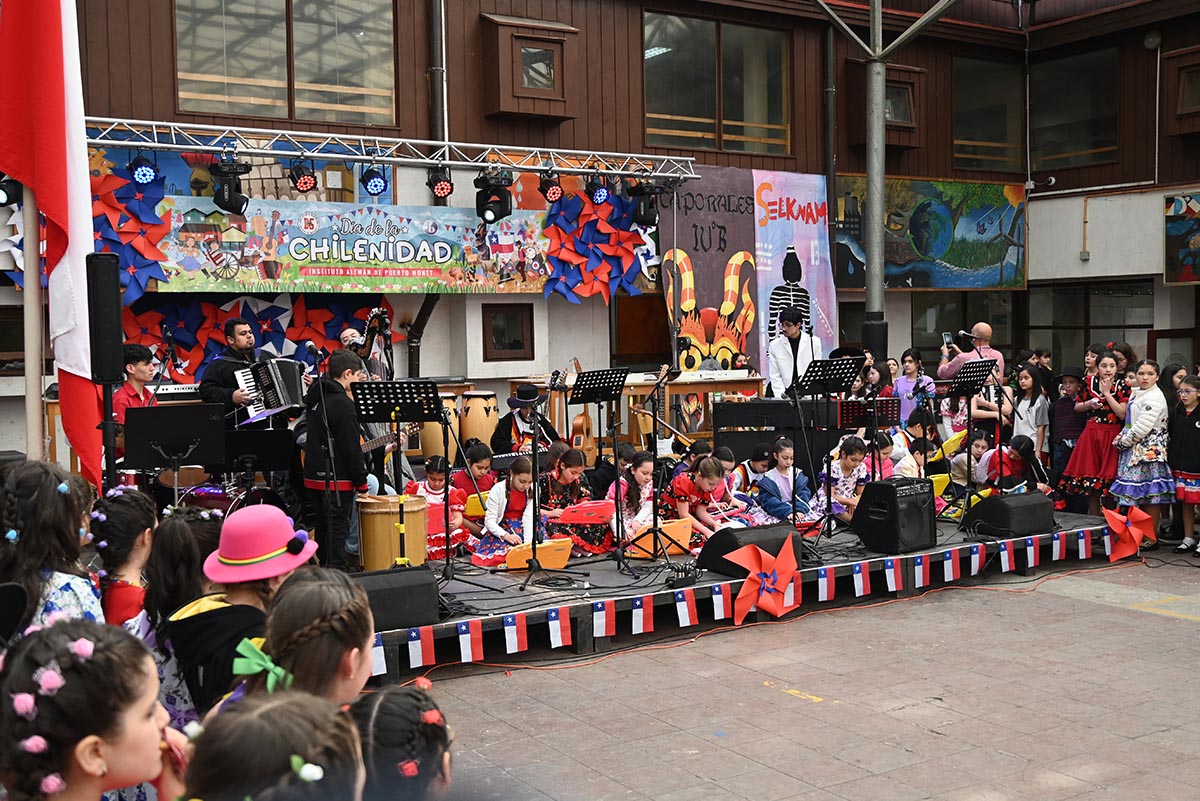 El Instituto Alemán de Puerto Montt celebró el Día de la Chilenidad con una jornada llena de música, bailes y tradiciones que reunió a estudiantes desde Medio Menor hasta IV Medio junto a sus profesores. Para los alumnos de IV Medio, esta fue su última celebración dieciochera en el colegio, lo que dio un sentido especial y emotivo al encuentro.