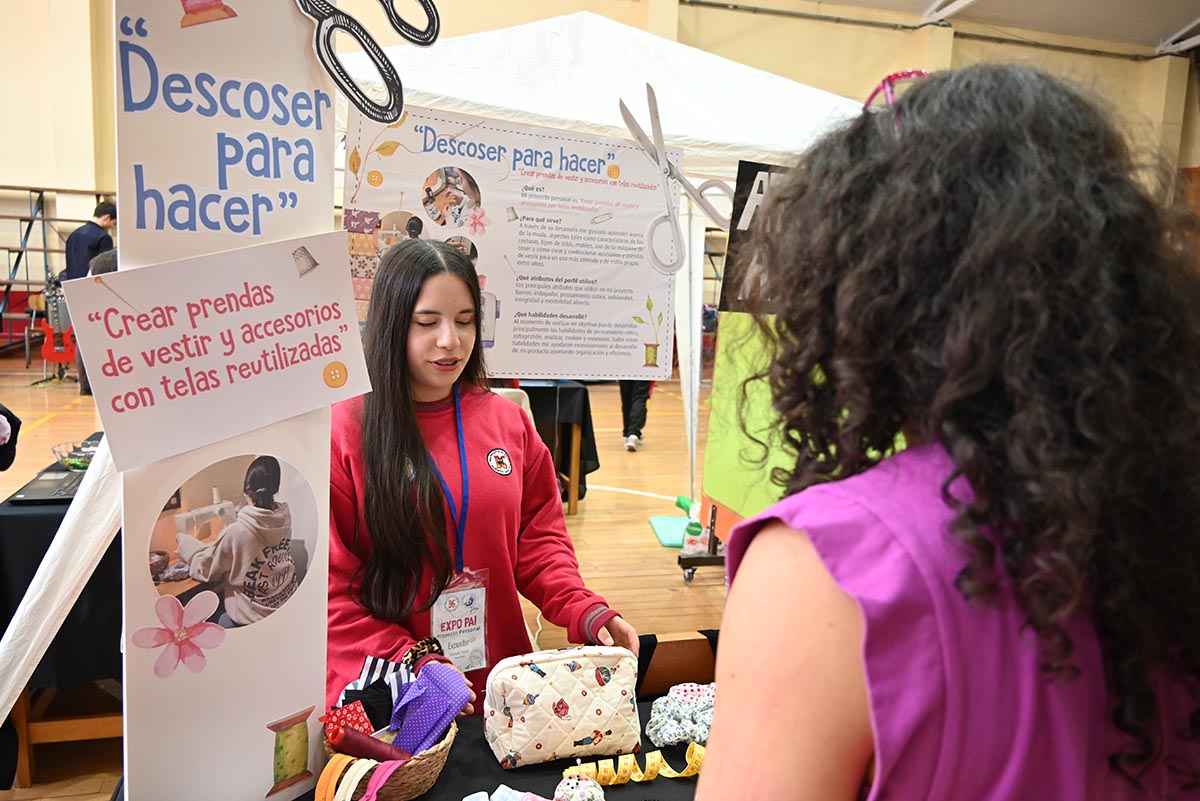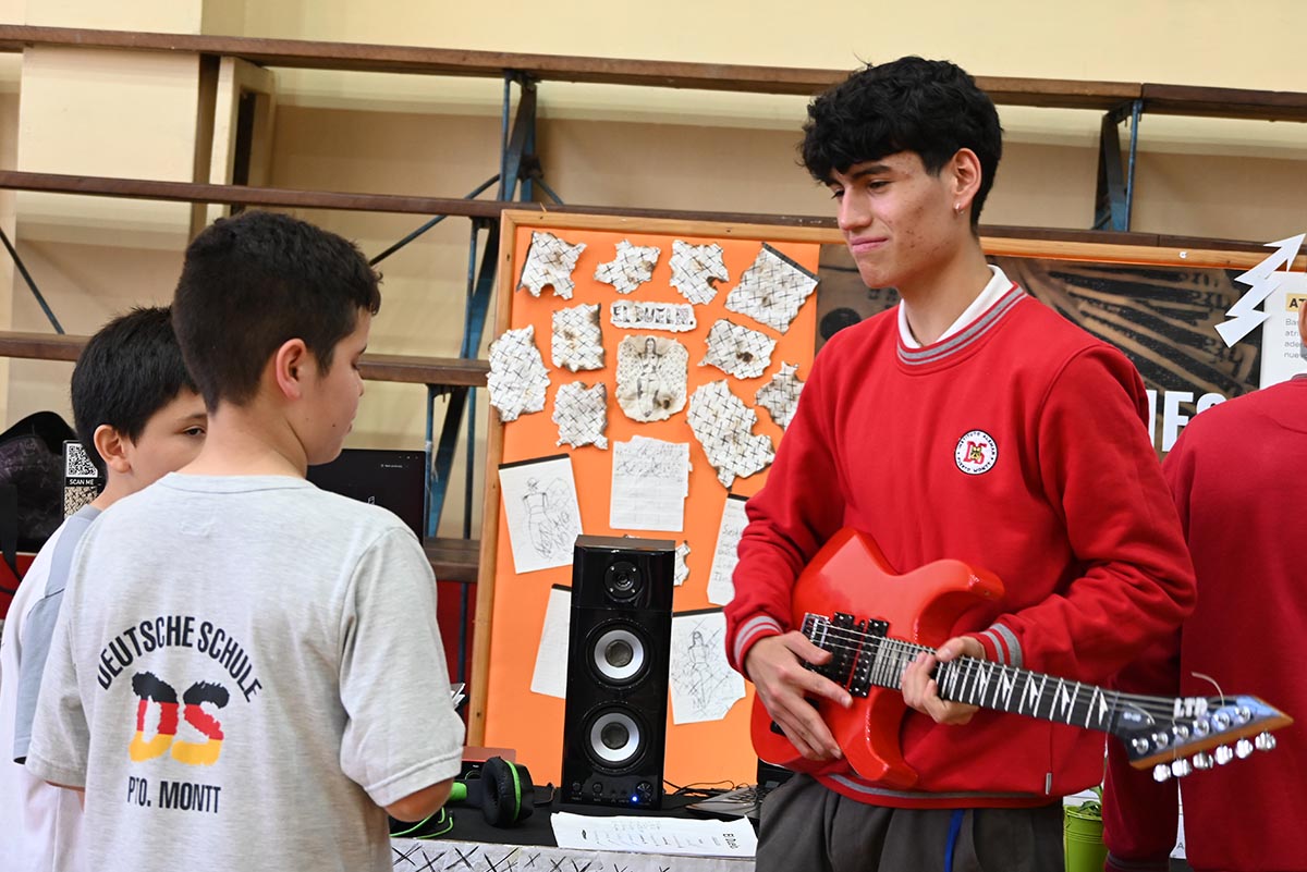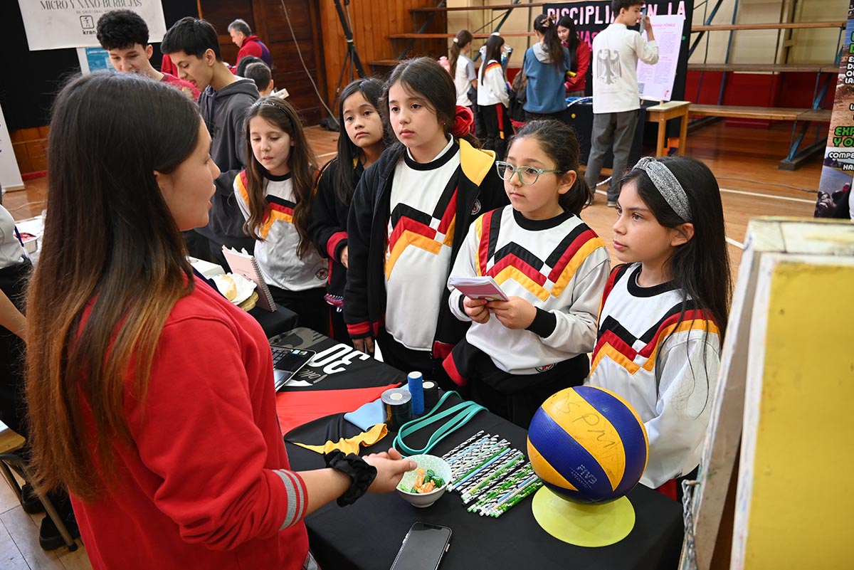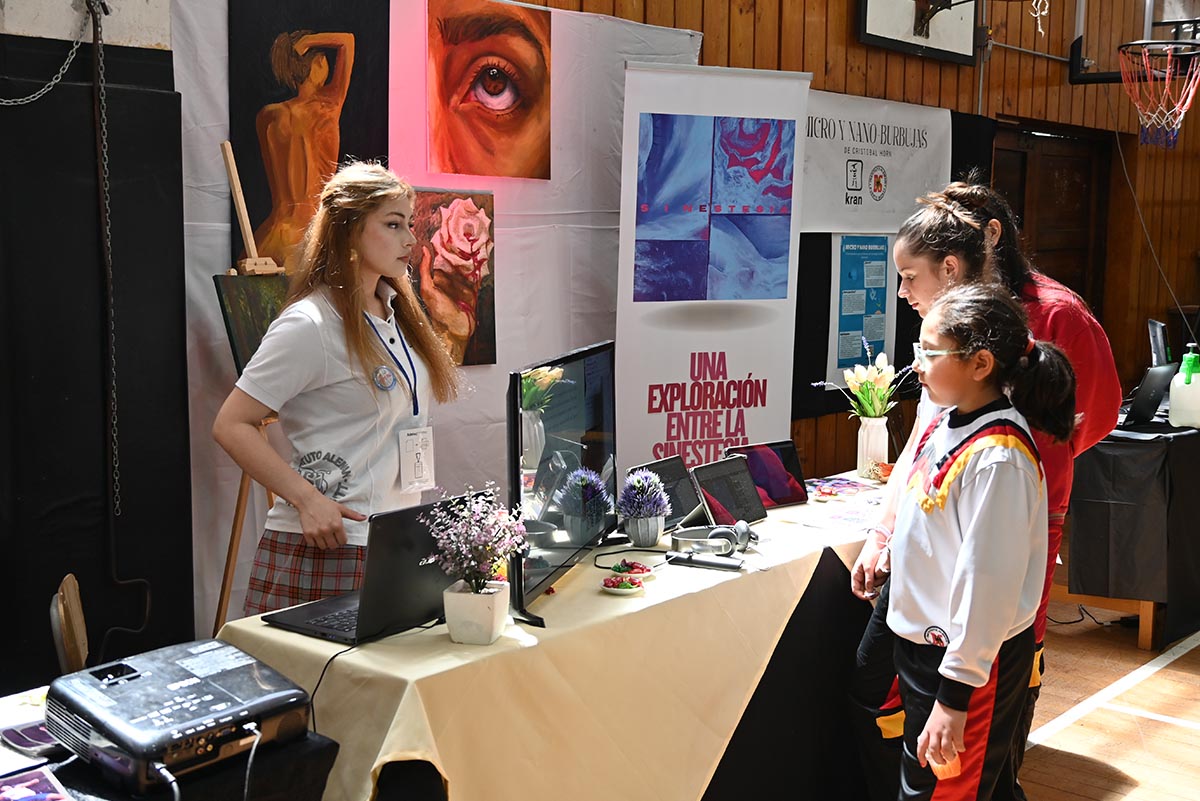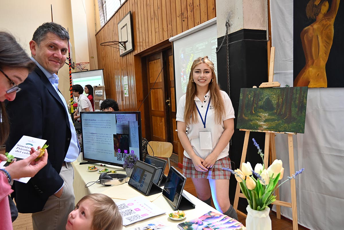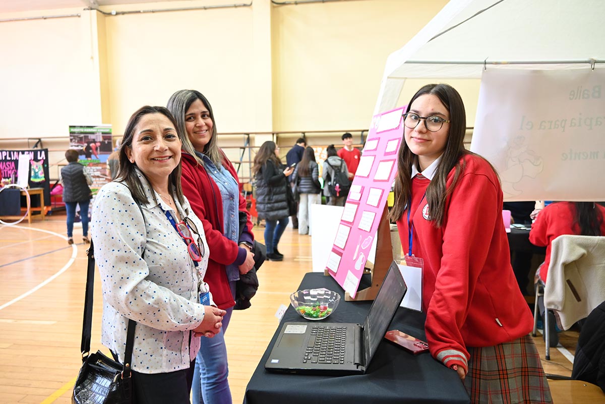 La muestra, desarrollada en el gimnasio 1, convocó a cursos de varios niveles, profesores y apoderados, quienes recorrieron los stands y conocieron una amplia variedad de temáticas abordadas por los estudiantes: artes, ciencias, psicología, deportes, gastronomía, idiomas, economía y tecnología, entre otras áreas. Cada proyecto reflejó intereses personales, creatividad y un enfoque particular para resolver problemáticas reales.