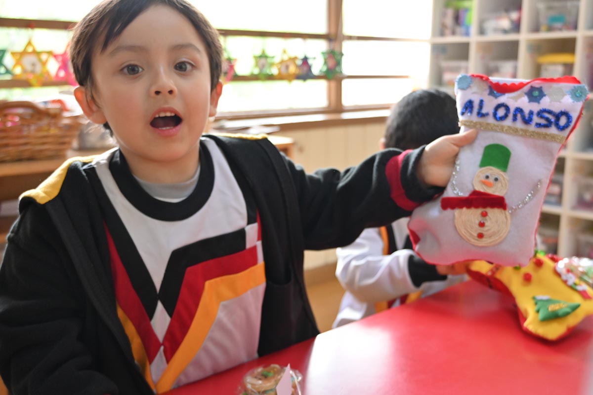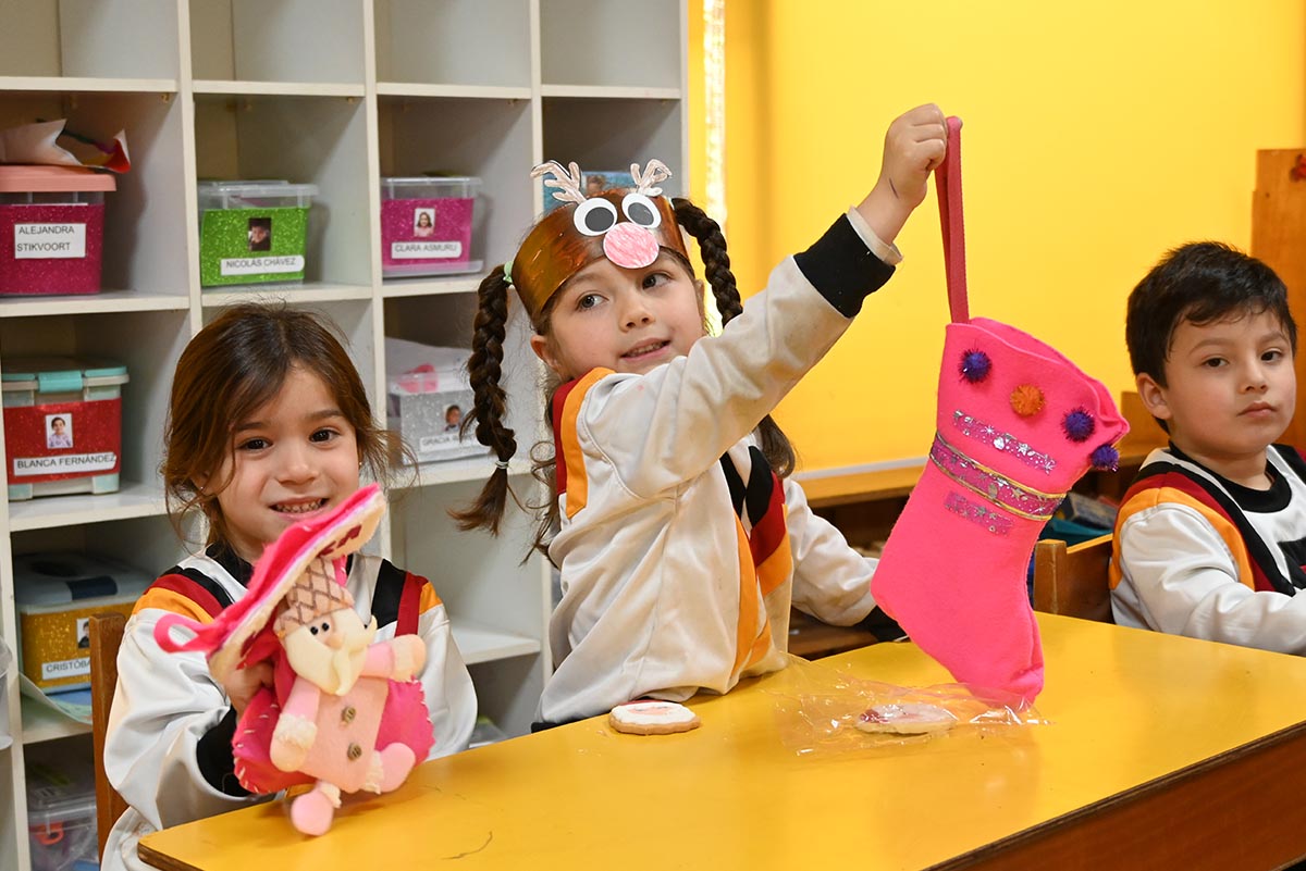 Durante la jornada del 5 de diciembre, los niños recorrieron el colegio junto a sus Tanten, cantando canciones en alemán y buscando al Nikolaus, quien dejó sus regalos de manera mágica y discreta en cada botita, convirtiendo esta experiencia en un recuerdo inolvidable y emotivo.