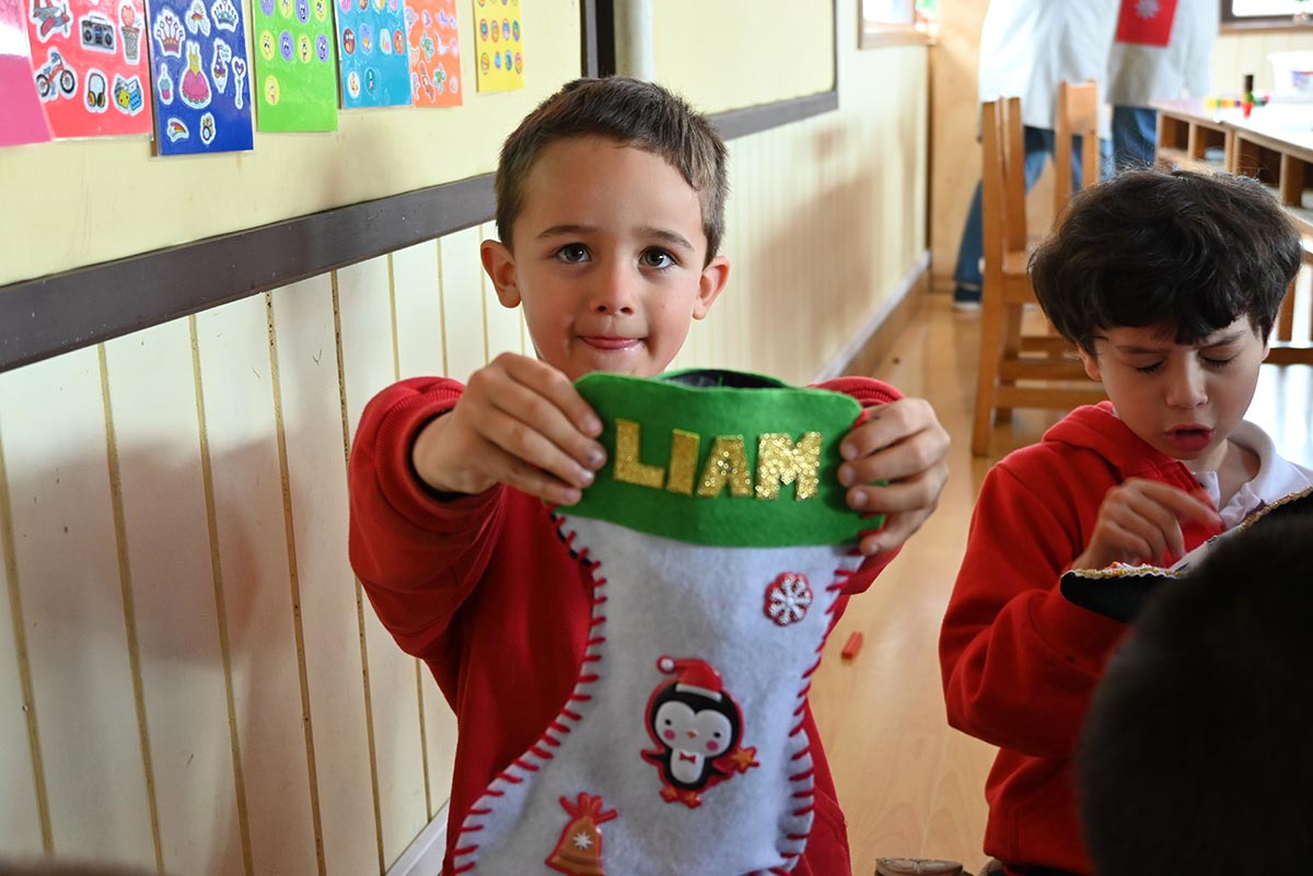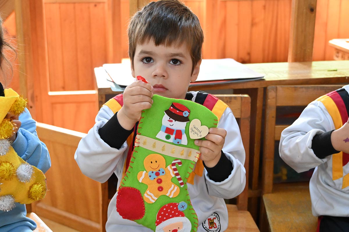 La actividad contó con el apoyo de las familias, quienes junto a sus hijos confeccionaron y decoraron las botitas, fortaleciendo el vínculo entre el hogar y el colegio en torno a esta significativa tradición.